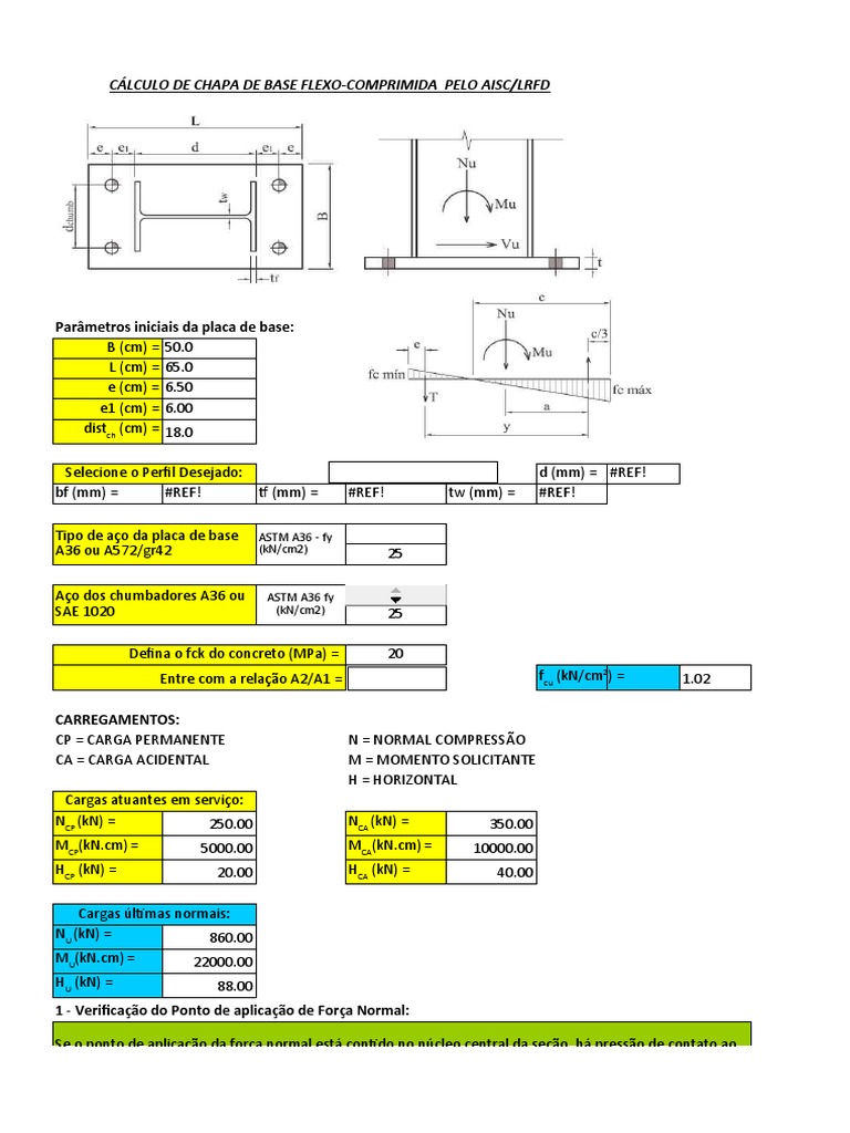 CÁLCULO DE CHAPA DE BASE FLEXO-COMPRIMIDA PELO AISC/LRFD