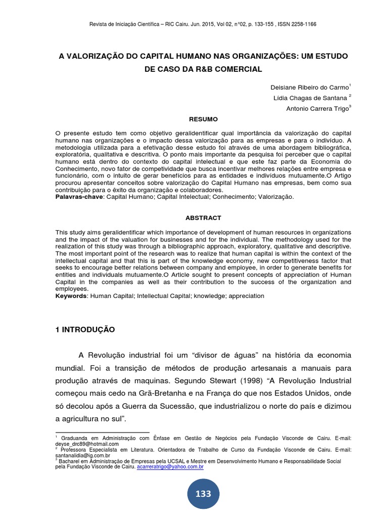 Palavras-chave: Capital Humano; Capital Intelectual; Conhecimento; Valorização.