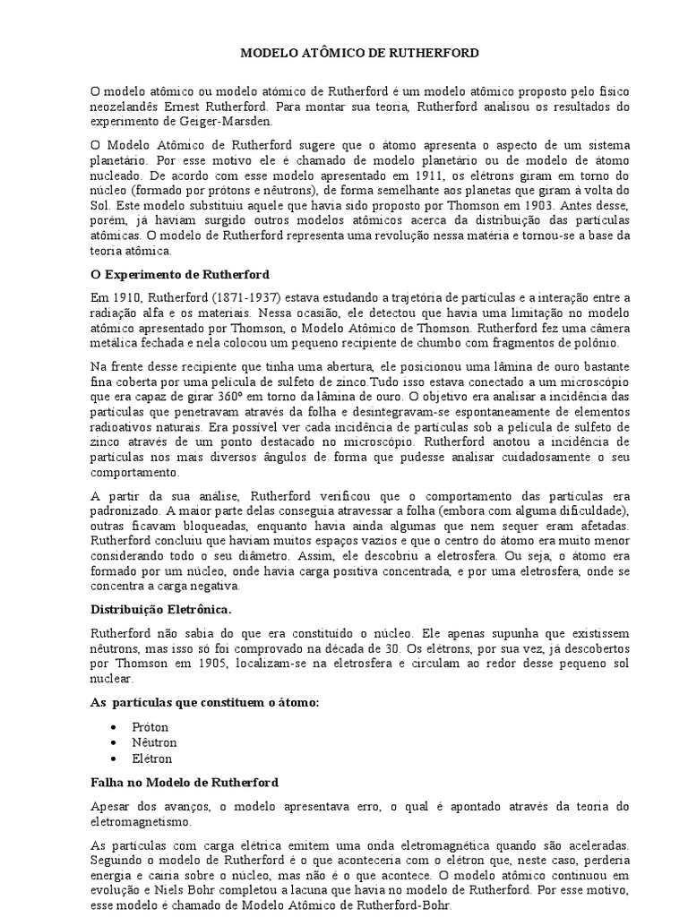 neozelandês Ernest Rutherford. Para montar sua teoria, Rutherford analisou os resultados do