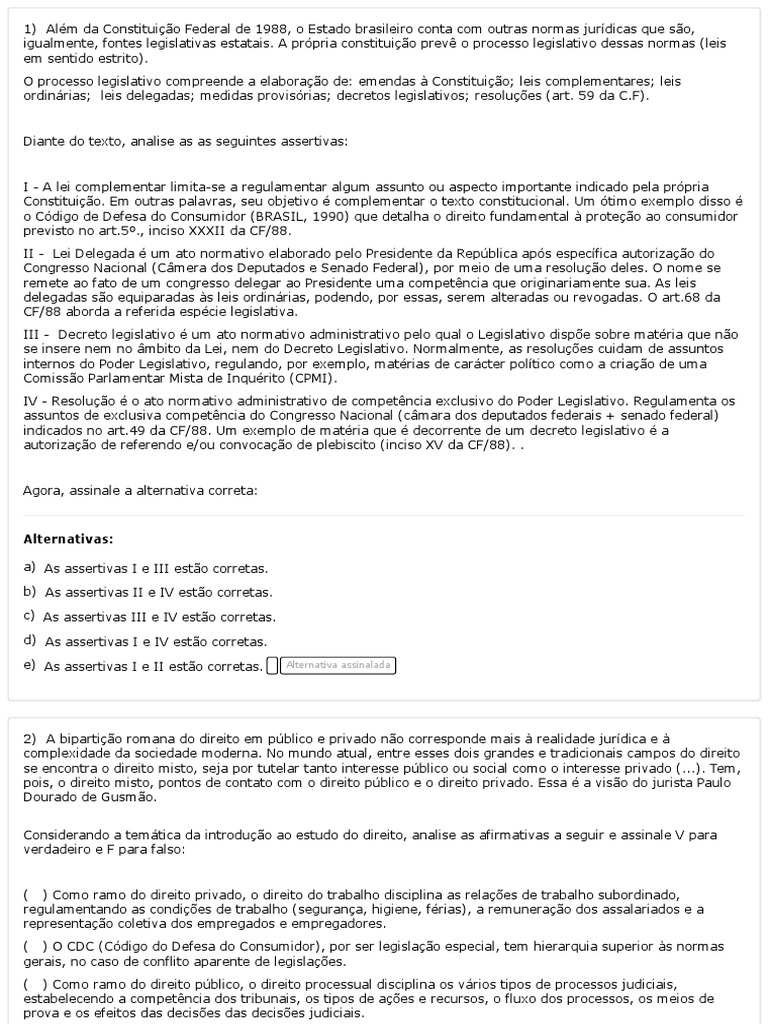 a) legislativas (leis, decretos, regulamentos etc), jurisprudenciais (sentenças, precedentes Alternativa assinalada
