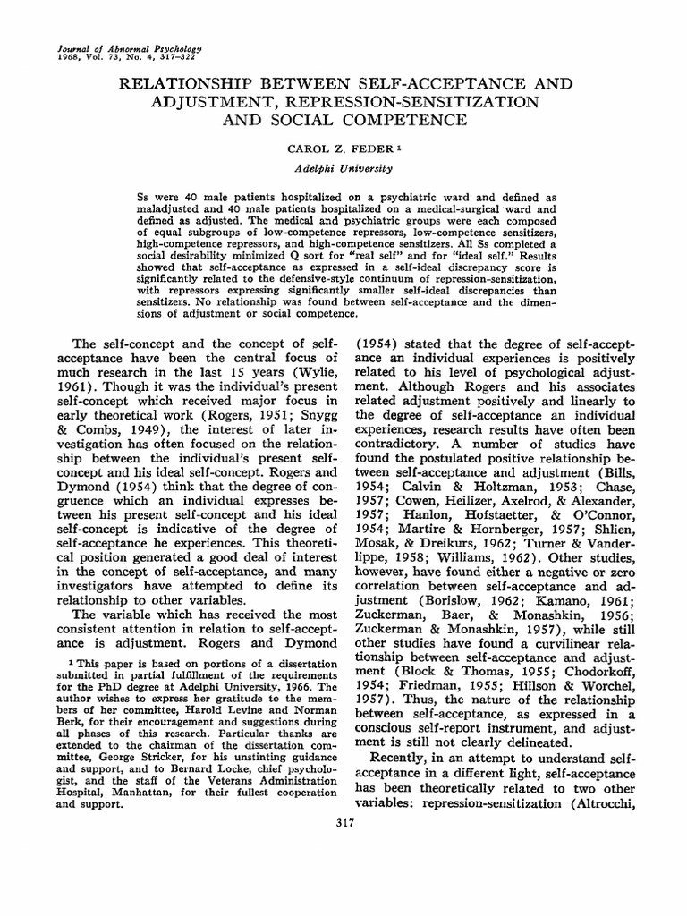 early theoretical work (Rogers, 19S1; Snygg the degree of self-acceptance an individual