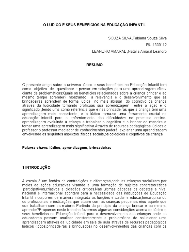 O presente artigo sobre o universo lúdico e seus benefícios na Educação Infantil tem