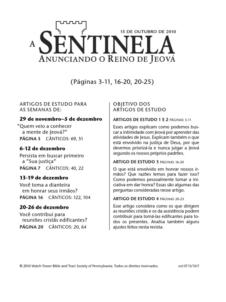 5 2010 Watch Tower Bible and Tract Society of Pennsylvania. Todos os direitos reservados. wst10 15/10-T