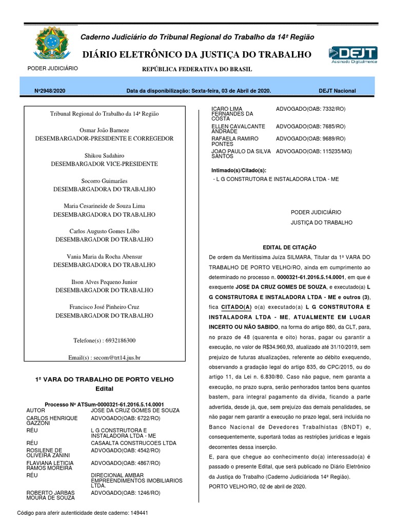 Edital e Intimações Trabalhistas
