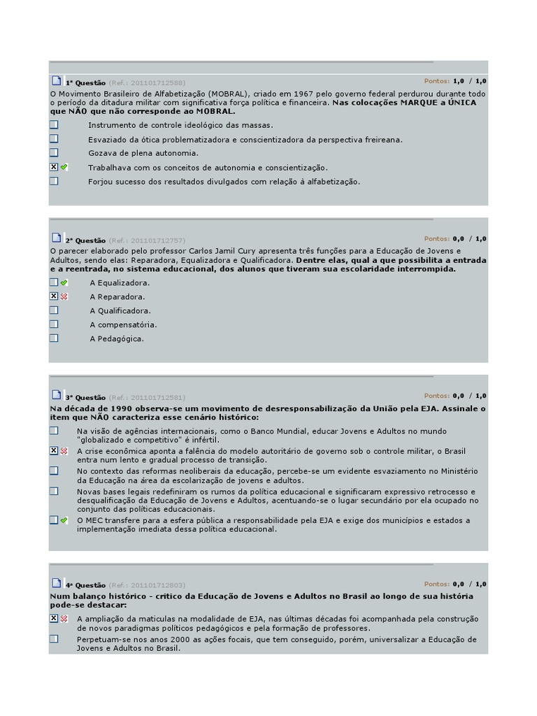 gratuita para todos os que a ele não tiveram acesso na idade própria". Assinale a opção que NÃO retrata