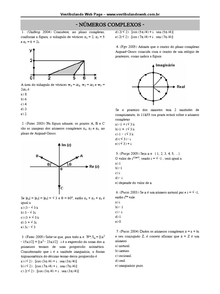 7. (Pucrs 2004) Dados os números complexos z = a + bi