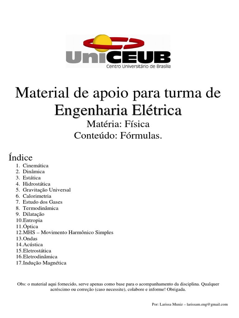 Obs: o material aqui fornecido, serve apenas como base para o acompanhamento da disciplina. Qualquer