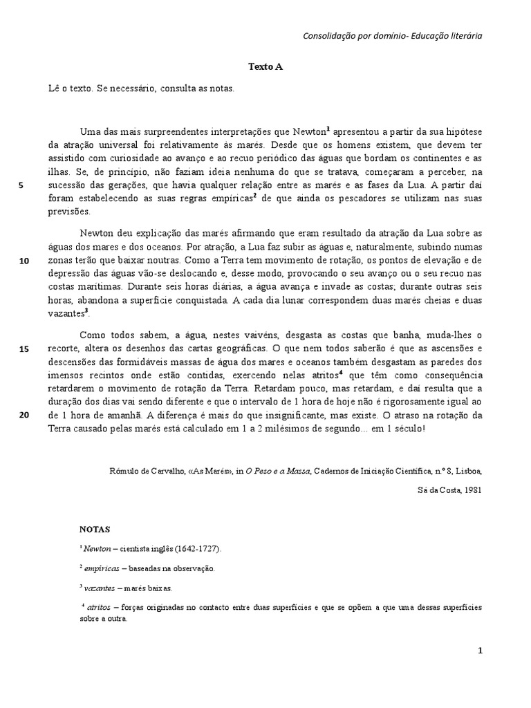 Rómulo de Carvalho, «As Marés», in O Peso e a Massa, Cadernos de Iniciação Científica, n.º 8, Lisboa,