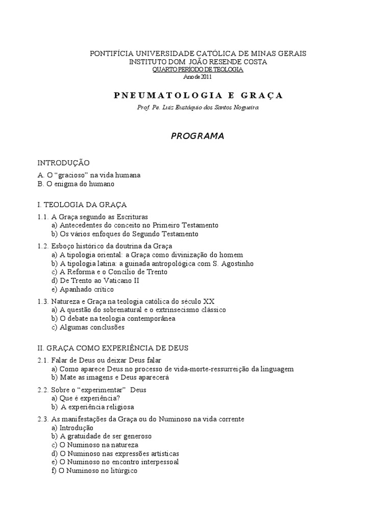 PNEUMATOLOGIA E GRAÇA