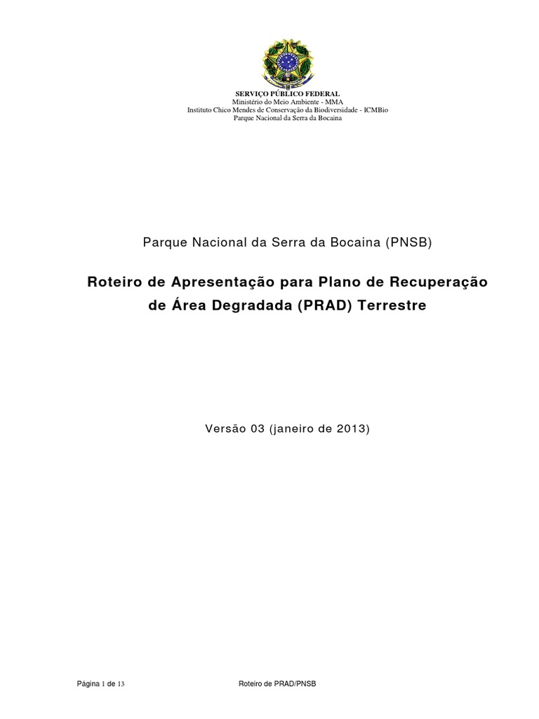Página 13 de 13 Roteiro de PRAD/PNSB