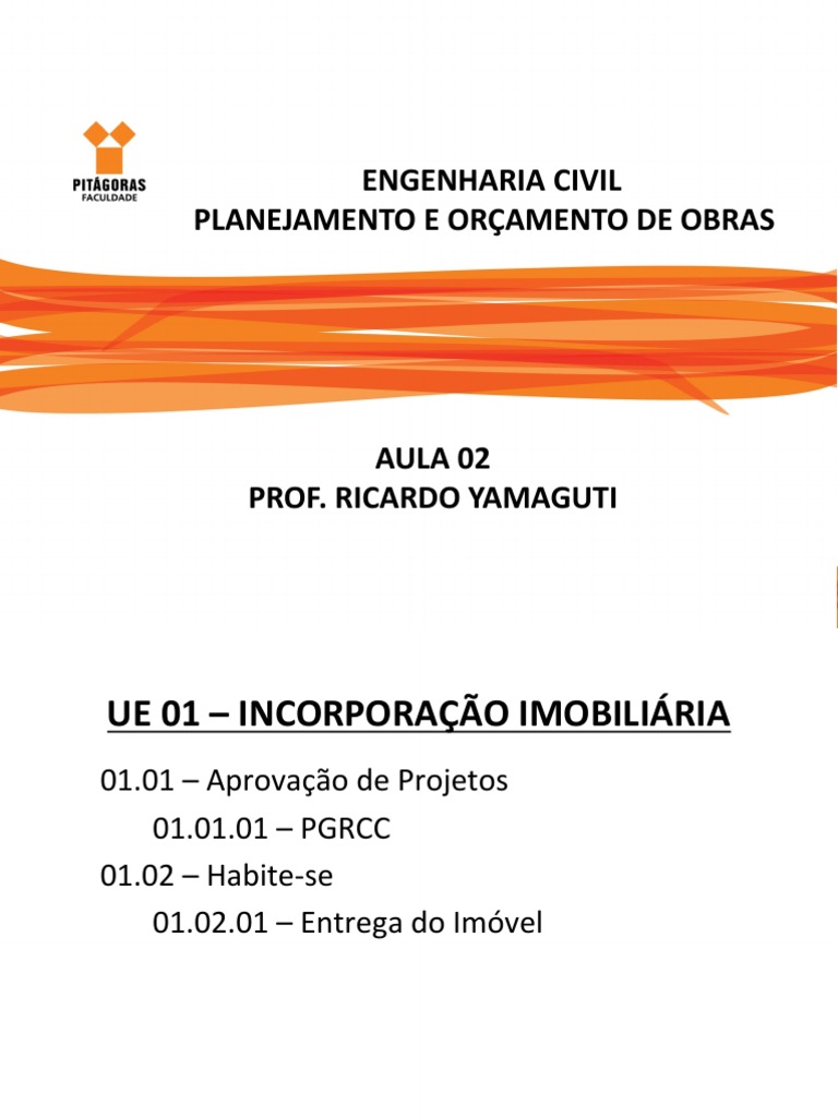 PLANEJAMENTO E ORÇAMENTO DE OBRAS - PROF. RICARDO YAMAGUTI
