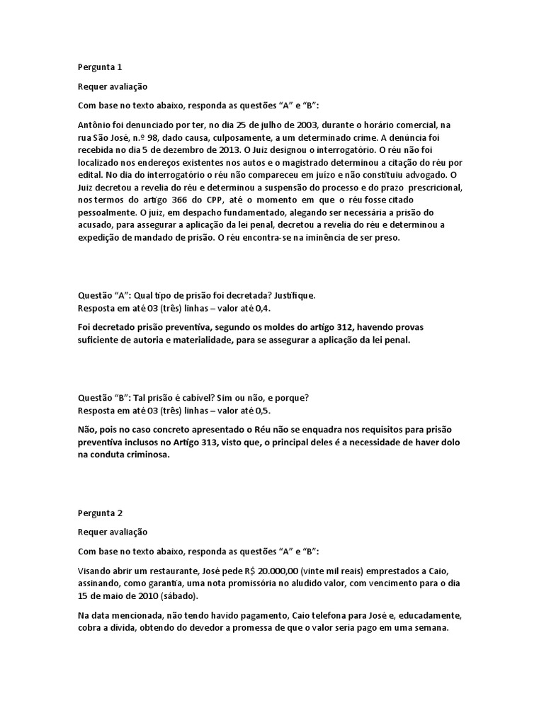 Questão “A”: Qual tipo de prisão foi decretada? Justifique.
