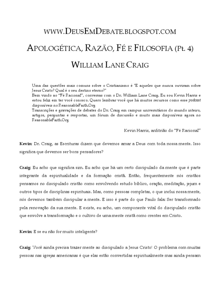 1Leia também o artigo “Conselhos para apologistas cristãos” no blog DeusEmDebate onde Craig discute como as