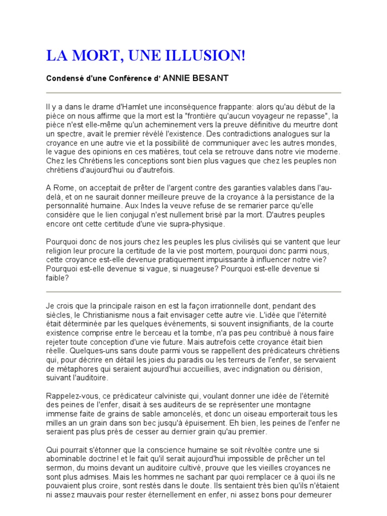 rejeter toute conception d'une vie future. Mais autrefois cette croyance était bien