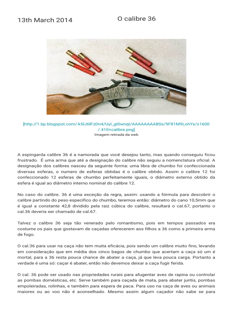 No caso do calibre. 36 é uma exceção da regra, assim: usando a fórmula para descobrir o