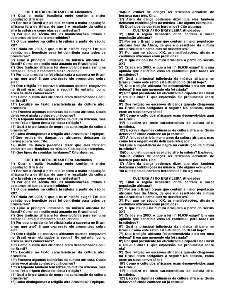 CULTURA AFRO-BRASILEIRA-Atividades herança para nós. Cite.