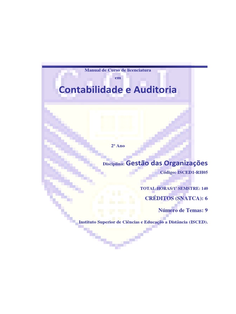 ISCED CURSO: contabilidade e Auditoria; Disciplina: Gestão das organizações i