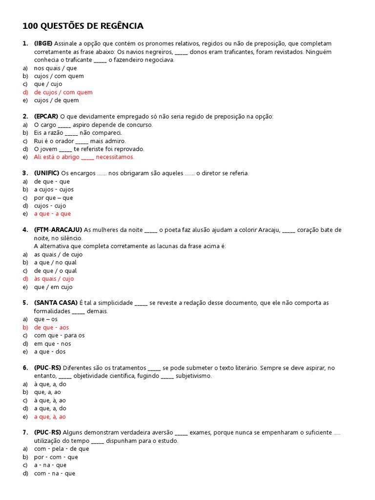 100 QUESTÕES DE REGÊNCIA