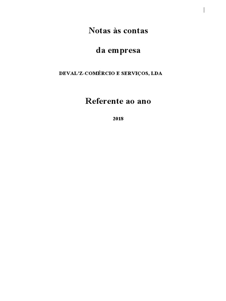 Notas às contas em referência ao exercício findo em 31 de Dezembro de 2018