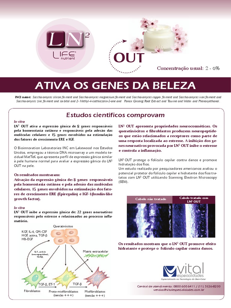 LN2 OUT ativa a expressão gênica de 8 genes responsáveis LN2 OUT apresenta propriedades neurocosméticas. Os
