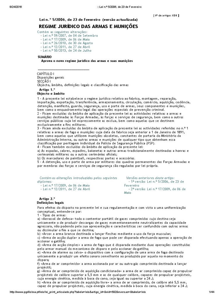 Lei n.º 5/2006, de 23 de Fevereiro (versão actualizada)