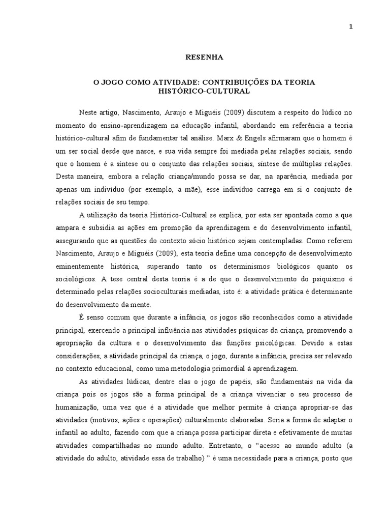 Rocha. O jogo como atividade: contribuições da teoria histórico- cultural. In: 32ª Reunião