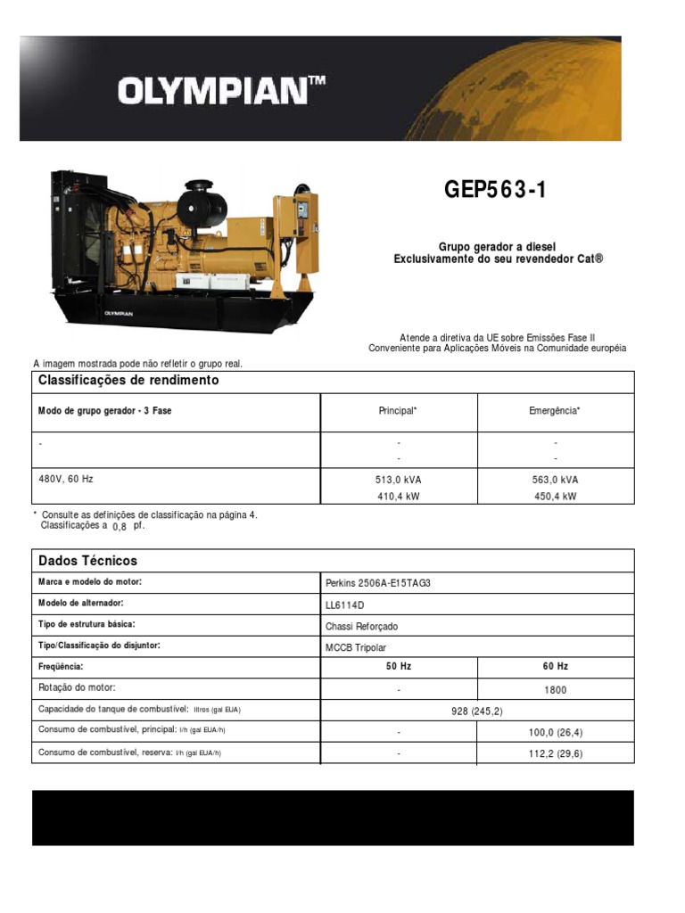 Consulte o seu revendedor OLYMPIAN local sobre classificações de potência em condições locais