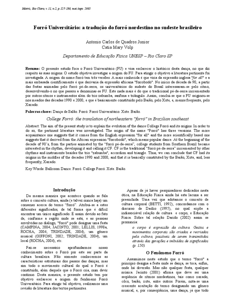 Abstract: The aim of the present study is to explain the evolution of the dance College Forró and its origins. In order to