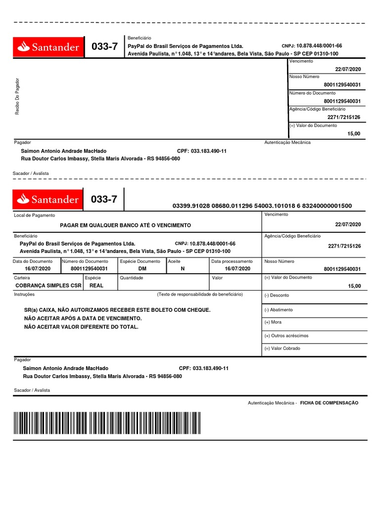 033-7 PayPal do Brasil Serviços de Pagamentos Ltda. CNPJ: 10.878.448/0001-66