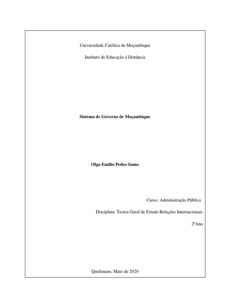 Neste presente trabalho que tem como tema Sistema de Governo Moçambicano, abordarei os