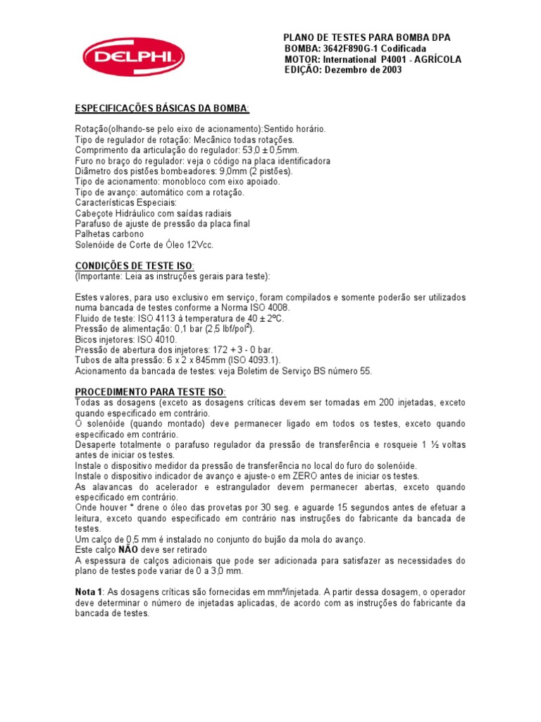 Nota 1: As dosagens críticas são fornecidas em mm³/injetada. A partir dessa dosagem, o operador