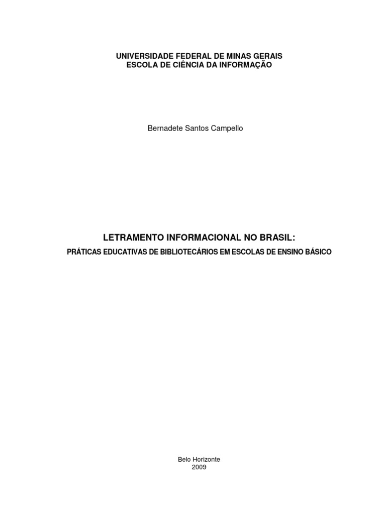 BIBLIOTECA ESCOLAR (http://www.eci.ufmg.br/gebe) da Escola de Ciência da Informação da UFMG e da