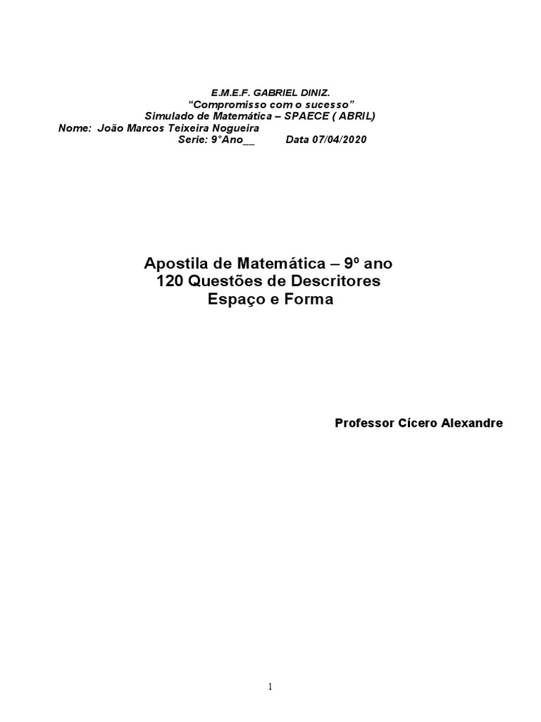 Simulado Matemático do 9º Ano