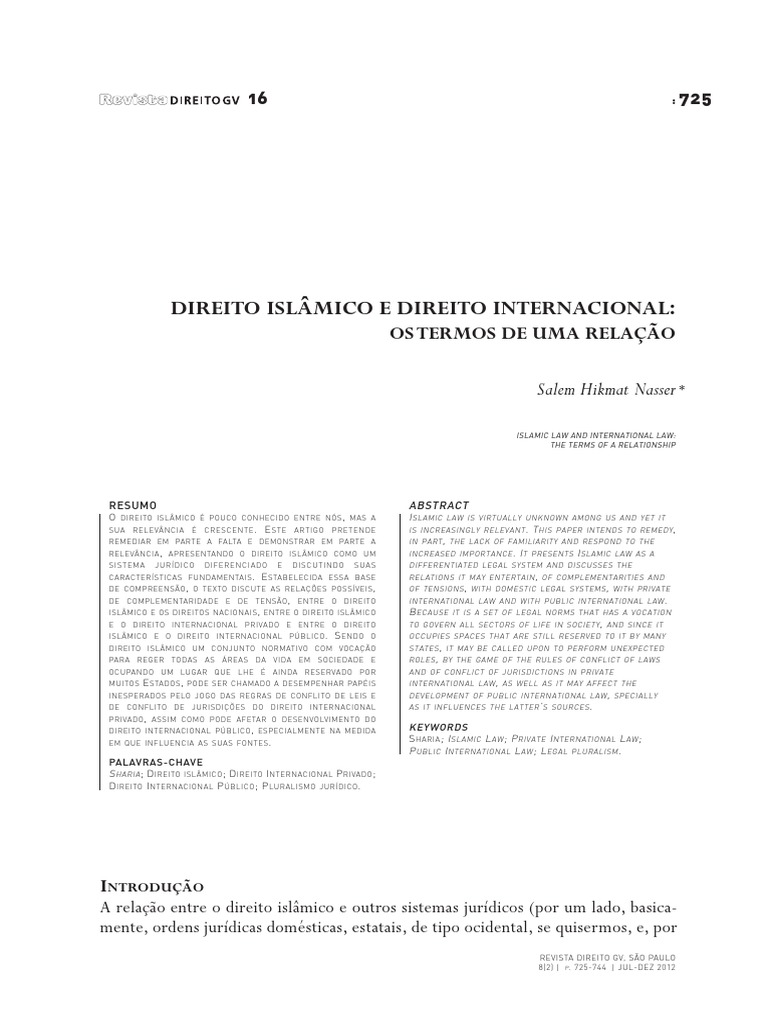 S HARIA ; D IREITO ISLÂMICO ; D IREITO I NTERNACIONAL P RIVADO ;