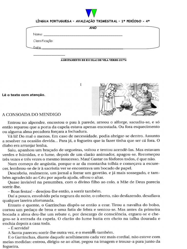 LÍNGUA PORTUGUESA – AVALIAÇÃO TRIMESTRAL – 1º PERÍODO - 4º