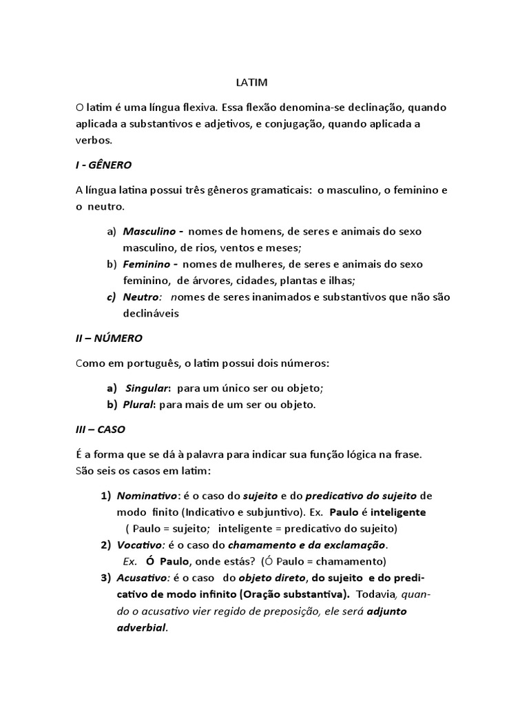 O latim é uma língua flexiva. Essa flexão denomina-se declinação, quando