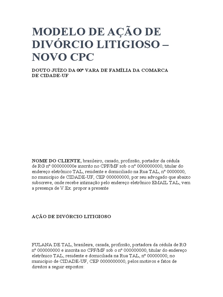 AÇÃO DE DIVÓRCIO LITIGIOSO
