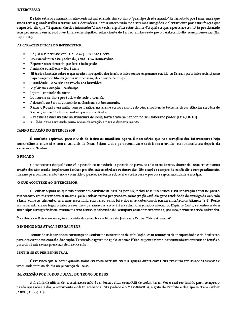 O intercessor é aquele que vê o pecado da sociedade, o pecado do povo, se coloca na brecha, diante de Deus em continua