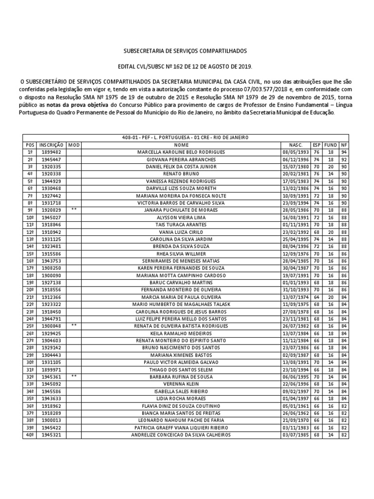 Portuguesa do Quadro Permanente de Pessoal do Município do Rio de Janeiro, no âmbito da Secretaria Municipal de Educação.