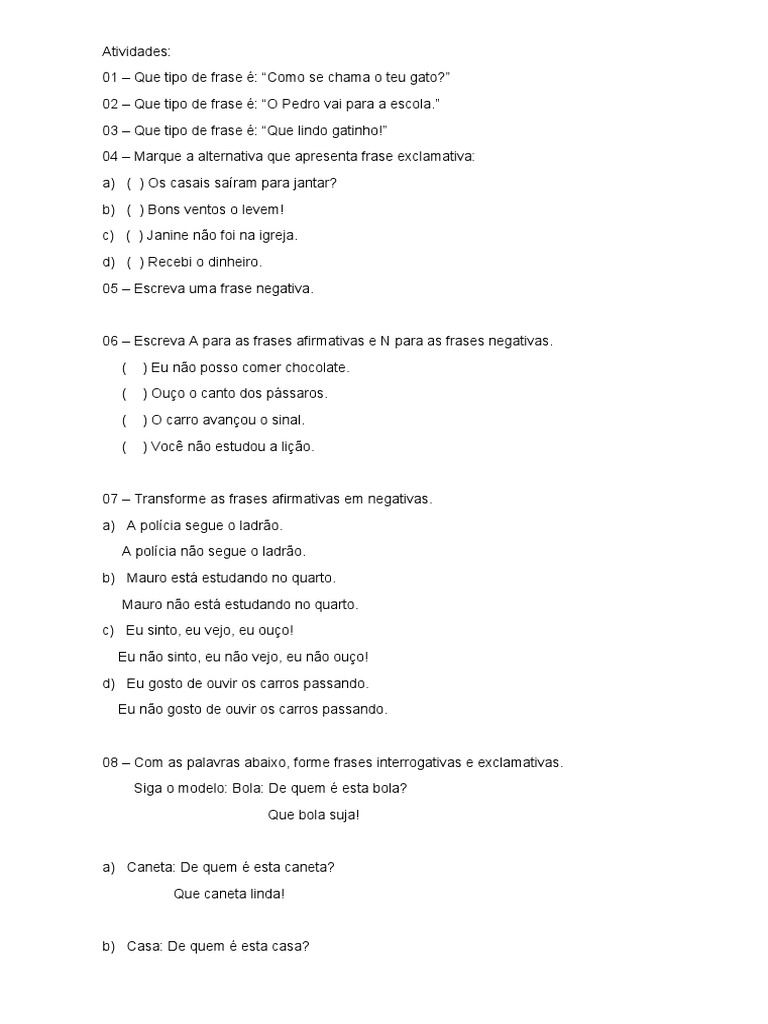 05 – Escreva uma frase negativa.