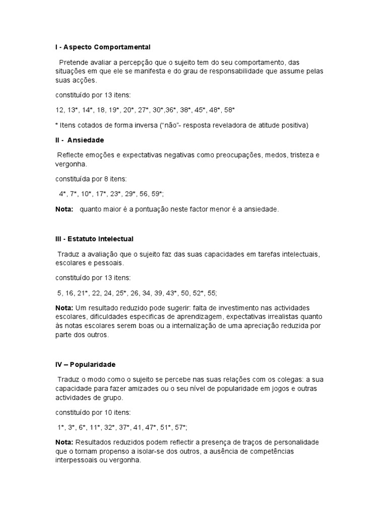 Pretende avaliar a percepção que o sujeito tem do seu comportamento, das