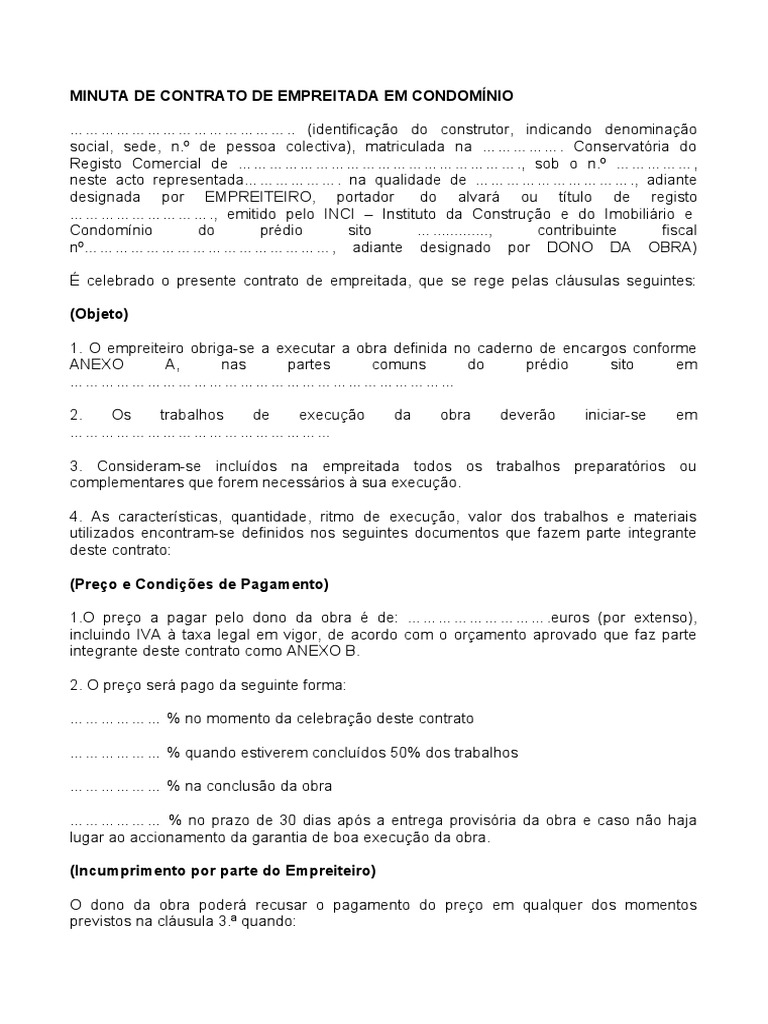 MINUTA DE CONTRATO DE EMPREITADA EM CONDOMÍNIO