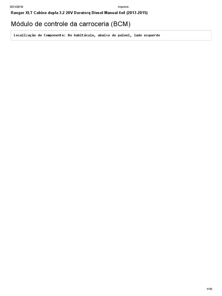 Localização do Componente: No habitáculo, abaixo do painel, lado esquerdo