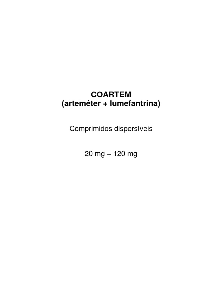 Cada comprimido dispersível de Coartem® contém 20 mg de arteméter e 120 mg de lumefantrina.