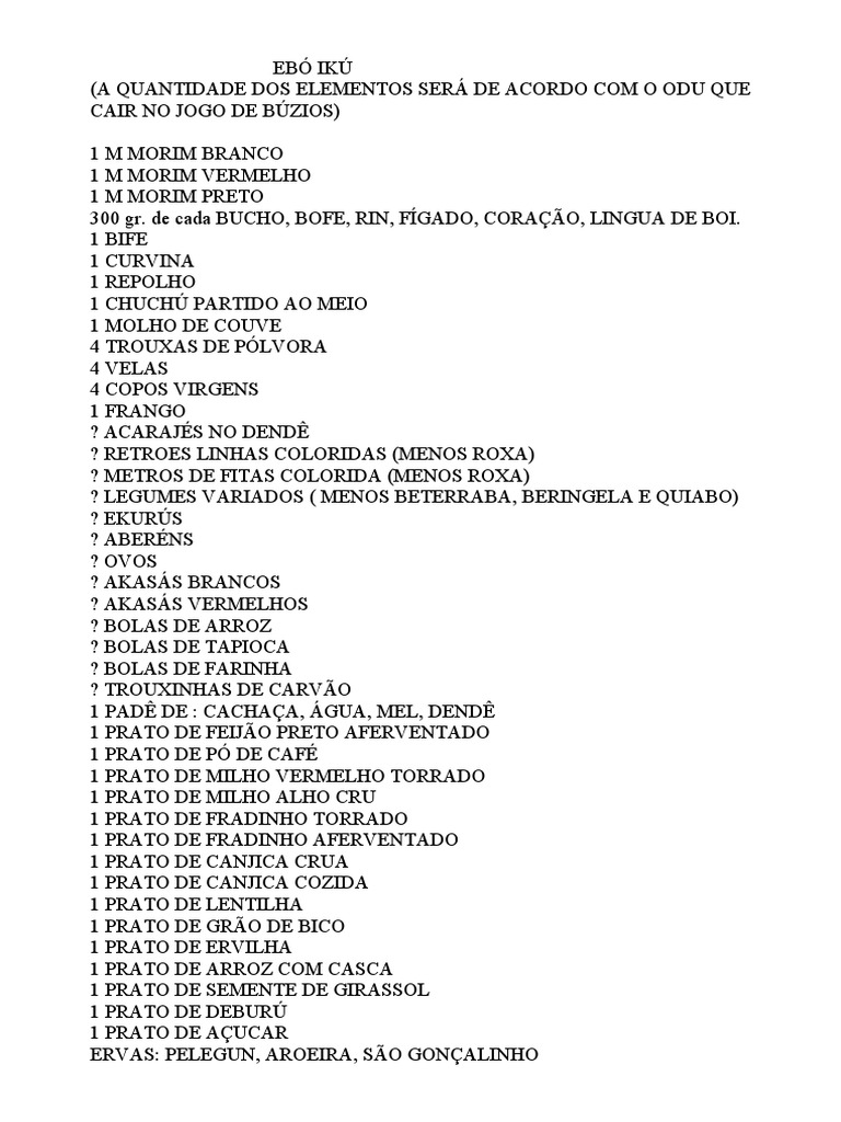 SARA NHE NHE EBÓ IKU NAN (REPETE-SE ATÉ TERMINAR O EBÓ)