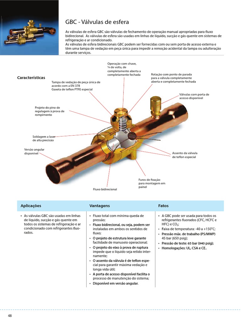 t As válvulas GBC são usadas em linhas t Fluxo total com mínima queda de t A GBC pode ser usada para todos os
