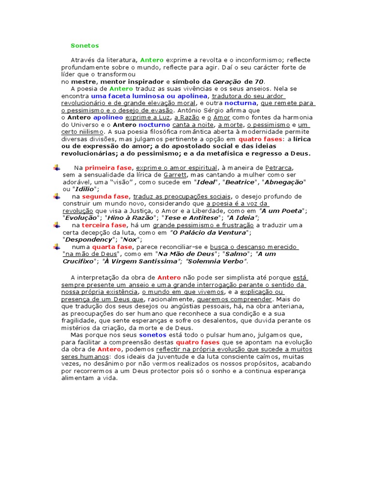 da obra de Antero, podemos reflectir na própria evolução que sucede a muitos