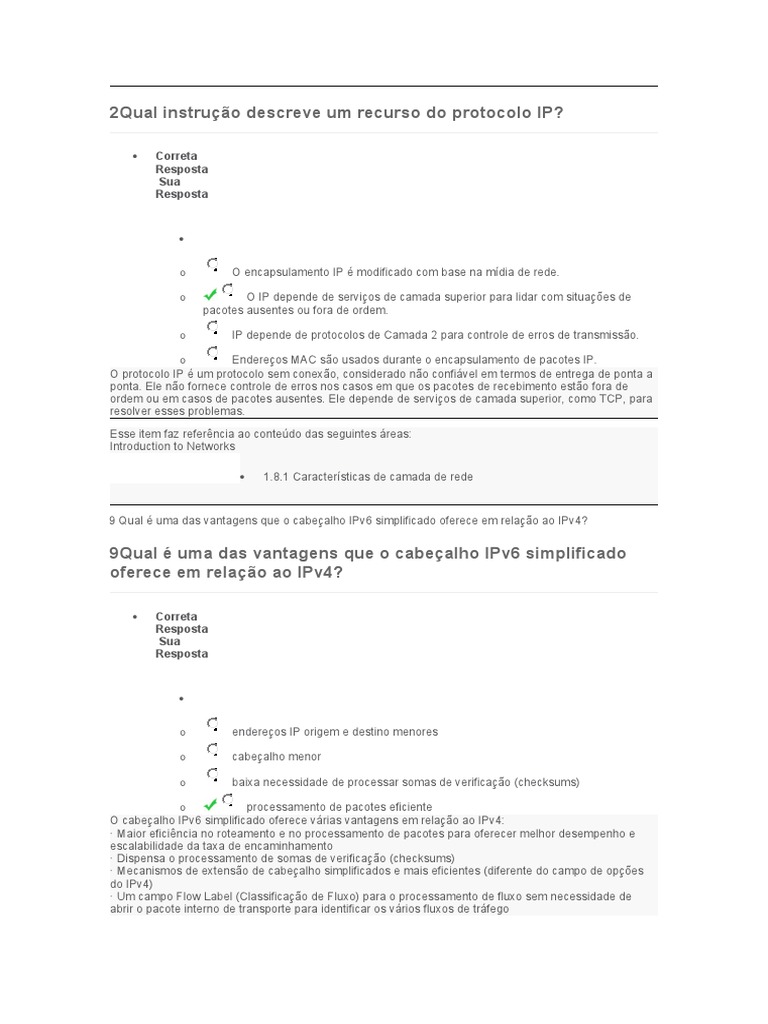 2Qual instrução descreve um recurso do protocolo IP?