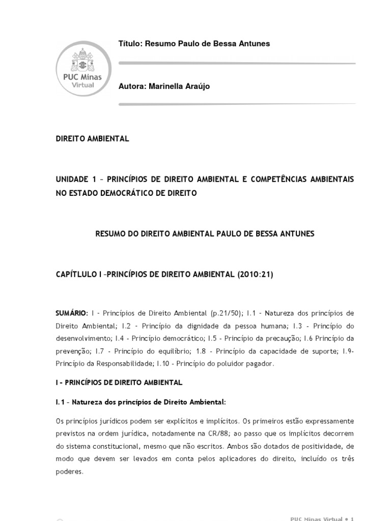 CAPÍTLULO I –PRINCÍPIOS DE DIREITO AMBIENTAL (2010:21)