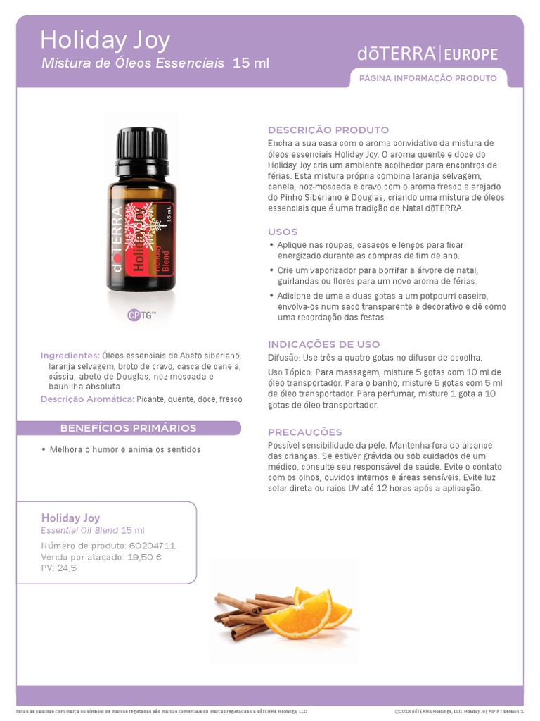 Todas as palavras com marca ou símbolo de marcas registadas são marcas comerciais ou marcas registadas da dōTERRA Holdings, LLC ©2018 dōTERRA Holdings, LLC Holiday Joy PIP PT Version 1